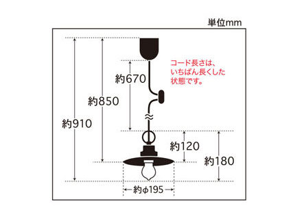 | GLF-3409(40W浪漫球付) ¥10,130(税抜) コード長さ約67.0cm・全長約91.0cm・幅約19.5cm・高さ約18.0cm・重量約369g GLF-3409X(電球なし) ¥9,150(税抜) コード長さ約67.0cm・全長約85.0cm・幅約19.5cm・高さ約12.0cm・重量約347g ・アルミP1セード(白塗装)・スチール(白塗装)・丸環(白塗装)・小口ホルダー(白塗装) ・E-26モーガルソケット・白コード・引掛シーリングキャップ付・白CPフレンジ・丸木自在(生地)付 |