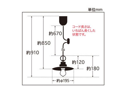 | GLF-3395(40W浪漫球付) ¥8,780(税抜) コード長さ約67.0cm・全長約91.0cm・幅約19.5cm・高さ約18.0cm・重量約357g GLF-3395X(電球なし) ¥7,800(税抜) コード長さ約67.0cm・全長約85.0cm・幅約19.5cm・高さ約12.0cm・重量約335g ・アルミP1セード(生地)・スチール(真鍮ブロンズ鍍金)・丸環(真鍮ブロンズ鍍金)・小口ホルダー(真鍮ブロンズ鍍金) ・E-26モーガルソケット・黒コード・引掛シーリングキャップ付・黒CPフレンジ・丸木自在(茶)付 |
