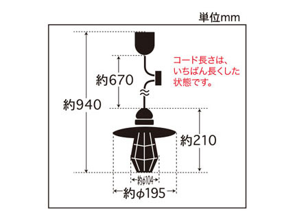 | ※コードの長さ変更いたします。(別途料金) 詳細は「コードの長さ変更について」をご覧ください。 |