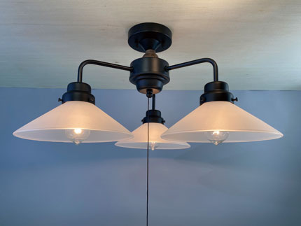 | GLF-3547BK(40W浪漫球付) ¥42,960(税抜) 幅約53.0cm・高さ約30.0cm・重量約2,276g GLF-3547BKX(電球なし) ¥40,200(税抜) 幅約53.0cm・高さ約28.0cm・重量約2,210g ・外消しP1硝子セード・スチール(黒塗装)・木製飾り・小口ホルダー(黒塗装)・E-26モーガルソケット ・フリー型速結端子付・プルスイッチ付(ON-OFF) ※「フリー型速結端子」仕様になりますので、取付には電気工事が必要です。 必ず電気工事店(有資格者)にご依頼ください。 |
