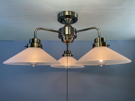 | GLF-3547BR(40W浪漫球付) ¥52,760(税抜) 幅約53.0cm・高さ約30.0cm・重量約2,276g GLF-3547BRX(電球なし) ¥50,000(税抜) 幅約53.0cm・高さ約28.0cm・重量約2,210g ・外消しP1硝子セード・スチール(真鍮ブロンズ鍍金)・木製飾り・小口ホルダー(真鍮ブロンズ鍍金) ・E-26モーガルソケット・フリー型速結端子付・プルスイッチ付(ON-OFF) ※「フリー型速結端子」仕様になりますので、取付には電気工事が必要です。 必ず電気工事店(有資格者)にご依頼ください。 |