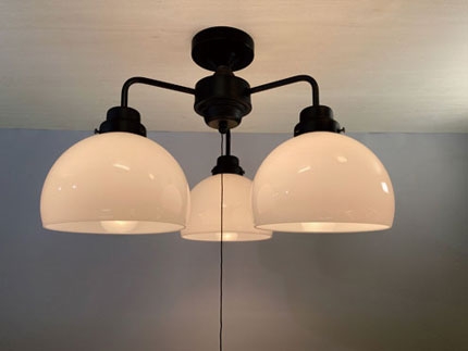 | GLF-3543BK(60Wホワイトシリカ球付) ¥40,680(税抜) 幅約50.0cm・高さ約34.5cm・重量約2,651g GLF-3543BKX(電球なし) ¥40,200(税抜) 幅約50.0cm・高さ約34.5cm・重量約2,570g ・鉄鉢硝子セード・スチール(黒塗装)・木製飾り・小口ホルダー(黒塗装)・E-26モーガルソケット ・フリー型速結端子付・プルスイッチ付(ON-OFF) ※「フリー型速結端子」仕様になりますので、取付には電気工事が必要です。 必ず電気工事店(有資格者)にご依頼ください。 |