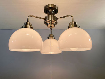 | GLF-3543BR(60Wホワイトシリカ球付) ¥50,480(税抜) 幅約50.0cm・高さ約34.5cm・重量約2,651g GLF-3543BRX(電球なし) ¥50,000(税抜) 幅約50.0cm・高さ約34.5cm・重量約2,570g ・鉄鉢硝子セード・スチール(真鍮ブロンズ鍍金)・木製飾り・小口ホルダー(真鍮ブロンズ鍍金) ・E-26モーガルソケット・フリー型速結端子付・プルスイッチ付(ON-OFF) ※「フリー型速結端子」仕様になりますので、取付には電気工事が必要です。 必ず電気工事店(有資格者)にご依頼ください。 |