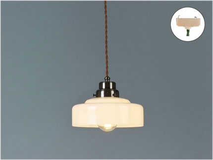 | GLF-3517BR(60wホワイトシリカ球付) ¥11,390(税抜) コード長さ約55.0cm・全長約72.5cm・幅約20.5cm・高さ約15.5cm・重量約715g GLF-3517BRX(電球なし) ¥11,170(税抜) コード長さ約55.0cm・全長約71.0cm・幅約20.5cm・高さ約14.0cm・重量約685g ・浅盛硝子セード・スチール(真鍮ブロンズ鍍金)・小口ホルダー(真鍮ブロンズ鍍金) ・E-26モーガルソケット・茶ネジリコード・引掛シーリングキャップ付 |