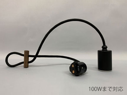 | GLF-0300BK-40DP ¥4,100(税抜) コード長さ約40.0cm・全長約51.5cm・重量約205g GLF-0300BK-70DP ¥4,300(税抜) コード長さ約70.0cm・全長約81.5cm・重量約215g ・スチール(黒塗装)・E-26モーガルソケット・黒コード・ダクトプラグ付 ・丸木自在(茶)付 |